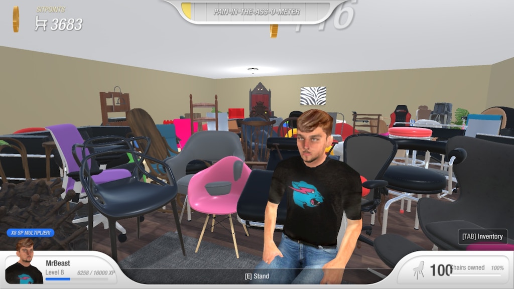 People collect luxury cars. And there's lots of car video games. But people also collect luxury chairs. And until MSCHF made Chair Simulator there were 0 chair simulation games. Originally released in 2021 for Mac and PC. Hitting #1 free game on Steam for the first 48 hours. Later in 2022 for MSCHF's first art show at Perrotin gallery it was made into an arcade cabinet, featuring a real chair. And finally shown at Daelim Museum in Seoul.